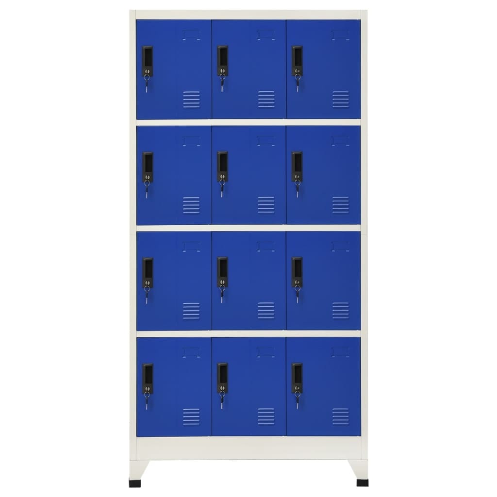 Locker Cabinet Grey and Blue Steel Large Modern Locks
