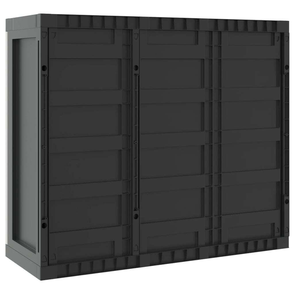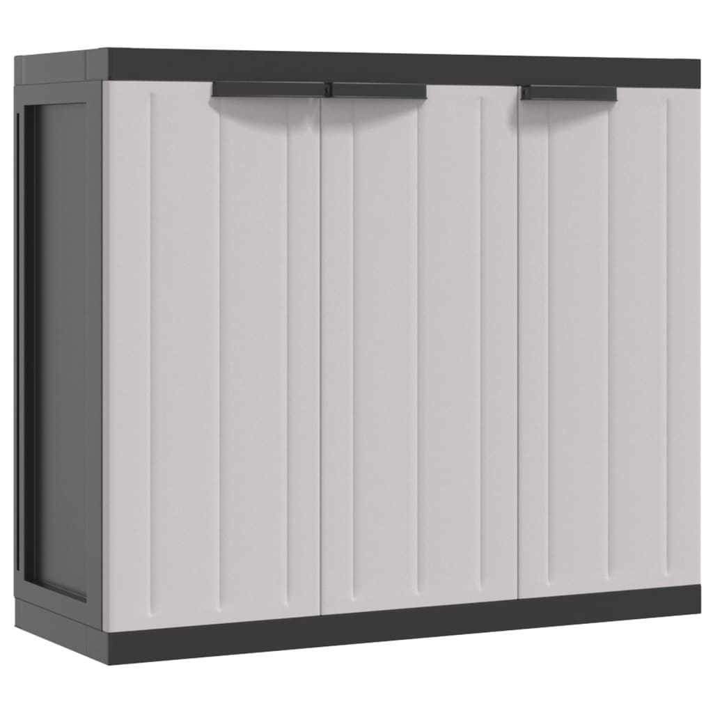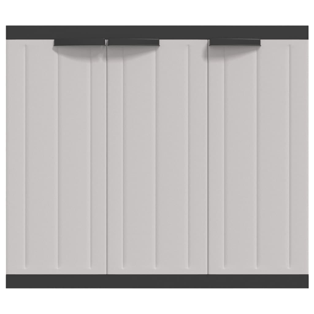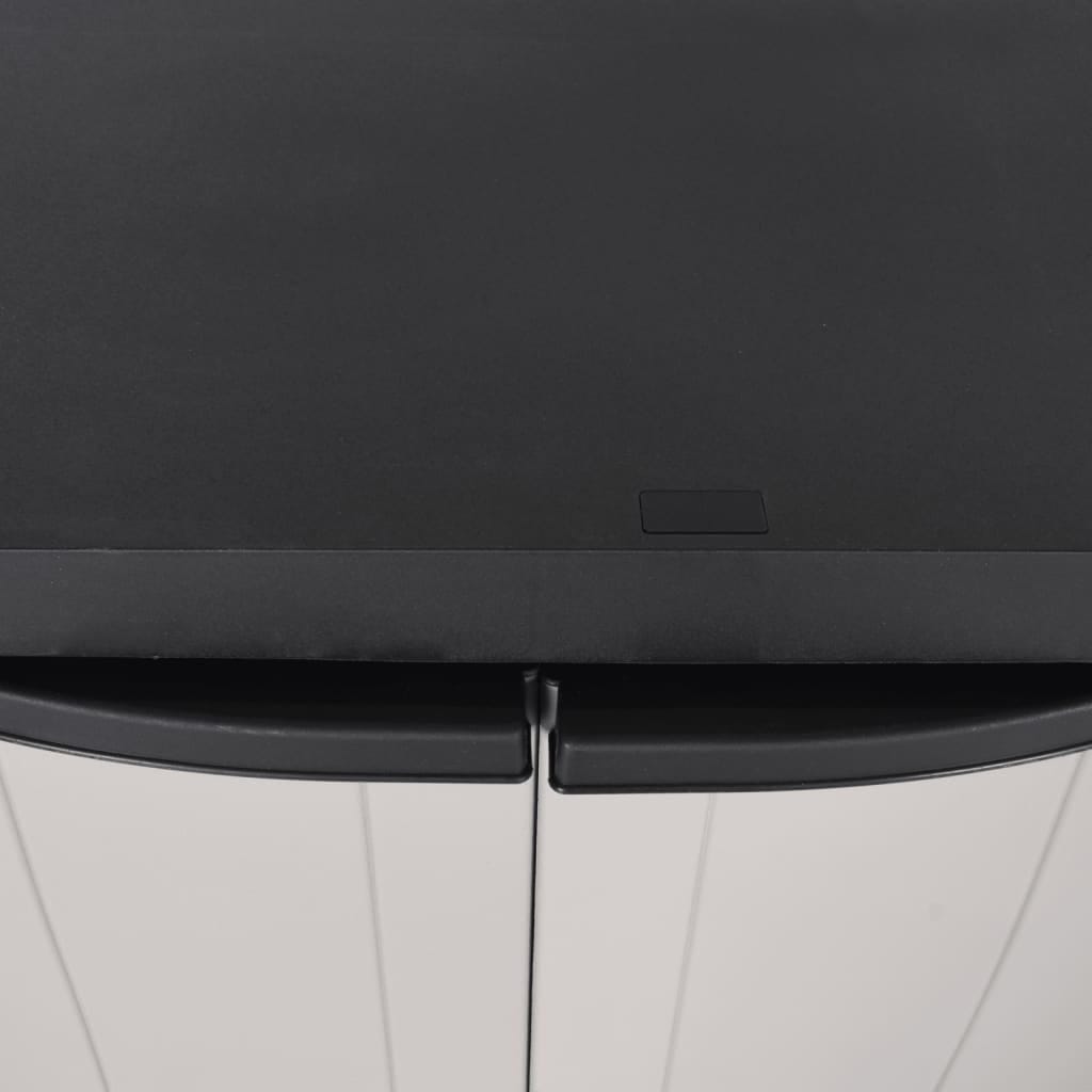 This outdoor storage cabinet is the perfect mix of style, function, and versatility, making it a top choice for anyone wanting to tidy up their outdoor spaces. With a trendy design that mixes gray and black, it not only offers plenty of storage but also enhances the look of your garden or balcony, keeping your stuff organized and attractive.