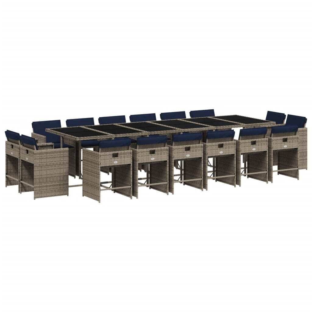 Patio Dining Set Set of 16 Gray PE Rattan Large Foldable