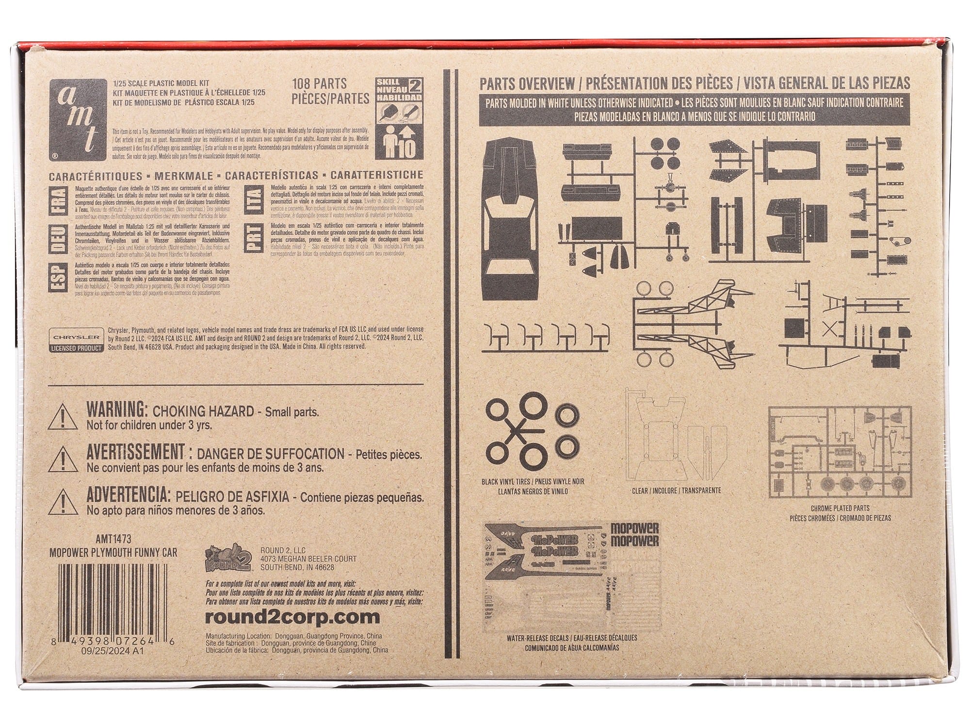 - Brand new 1/25 scale plastic model kit of Plymouth Funny Car “Mopower” (Skill 2) 1/25 plastic model kit by AMT.