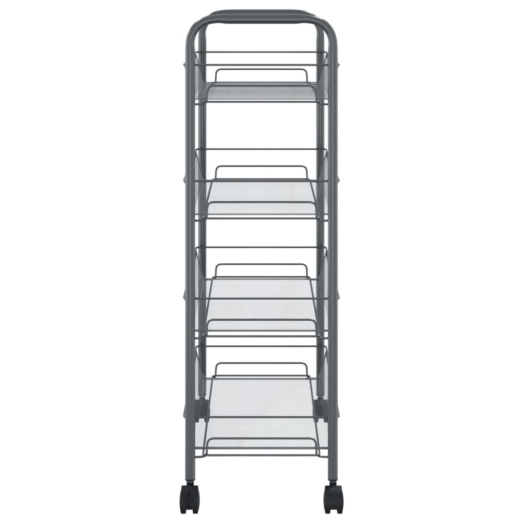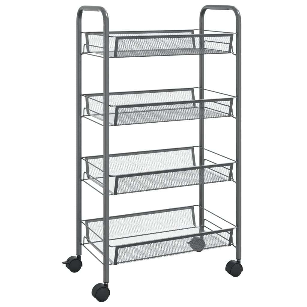 This household trolley features an iron construction, making it sturdy and durable. The space-saving cart has 4 wheels, and 2 wheels have brakes for easy moving and stalling. The mesh baskets are strong and removable, which provide additional storage space and make full use of the room. The trolley is ideal for storing toys, keys, food, etc.