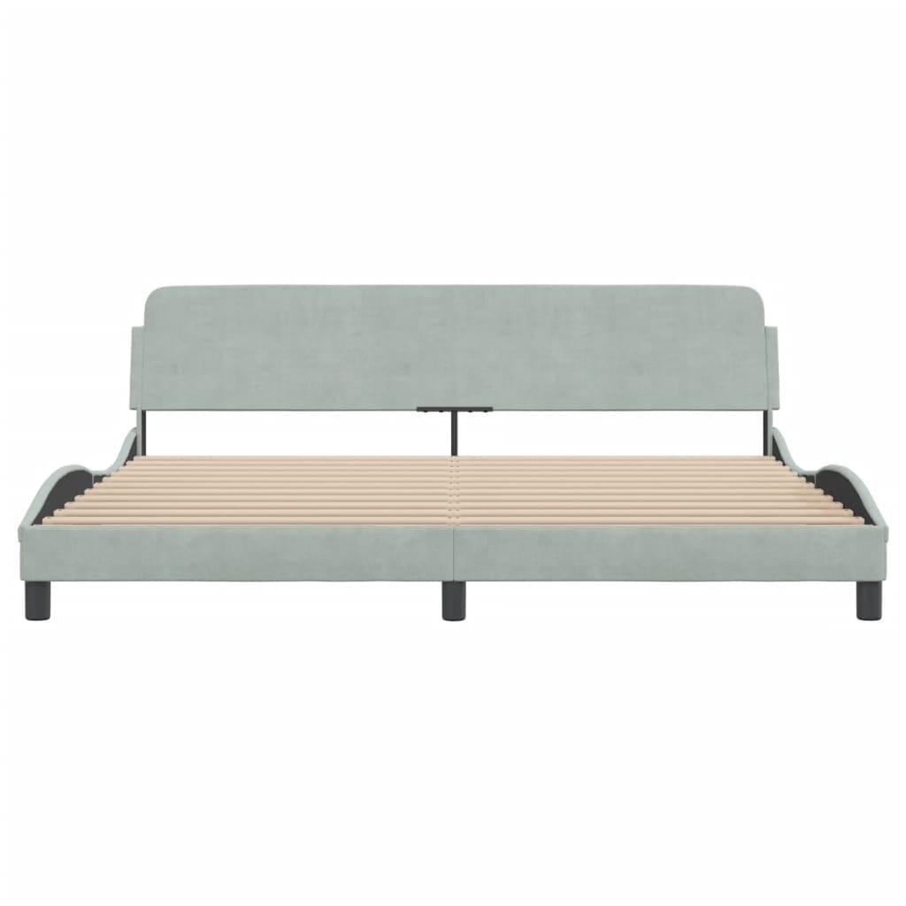 This modern light grey velvet bed frame is all about elegance with its stylish curved design. Not only does it provide a comfy sleeping experience, but it also enhances your bedroom decor style. At 77.0 in. long and 85.8 in. wide, this spacious double bed is perfect for couples or anyone who likes to spread out while they sleep, blending in effortlessly with contemporary interiors thanks to its sleek design and soft velvet vibe.