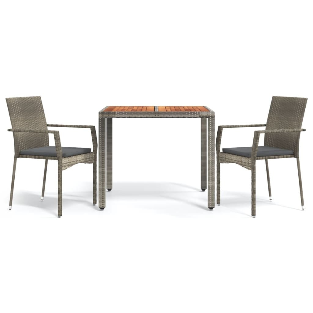 This 3 Piece Garden Dining Set showcases a chic blend of comfort and style, perfect for enjoying the outdoors. Built with solid acacia wood and durable PE rattan, it offers a nice look for intimate dining in gardens, patios, or balconies.