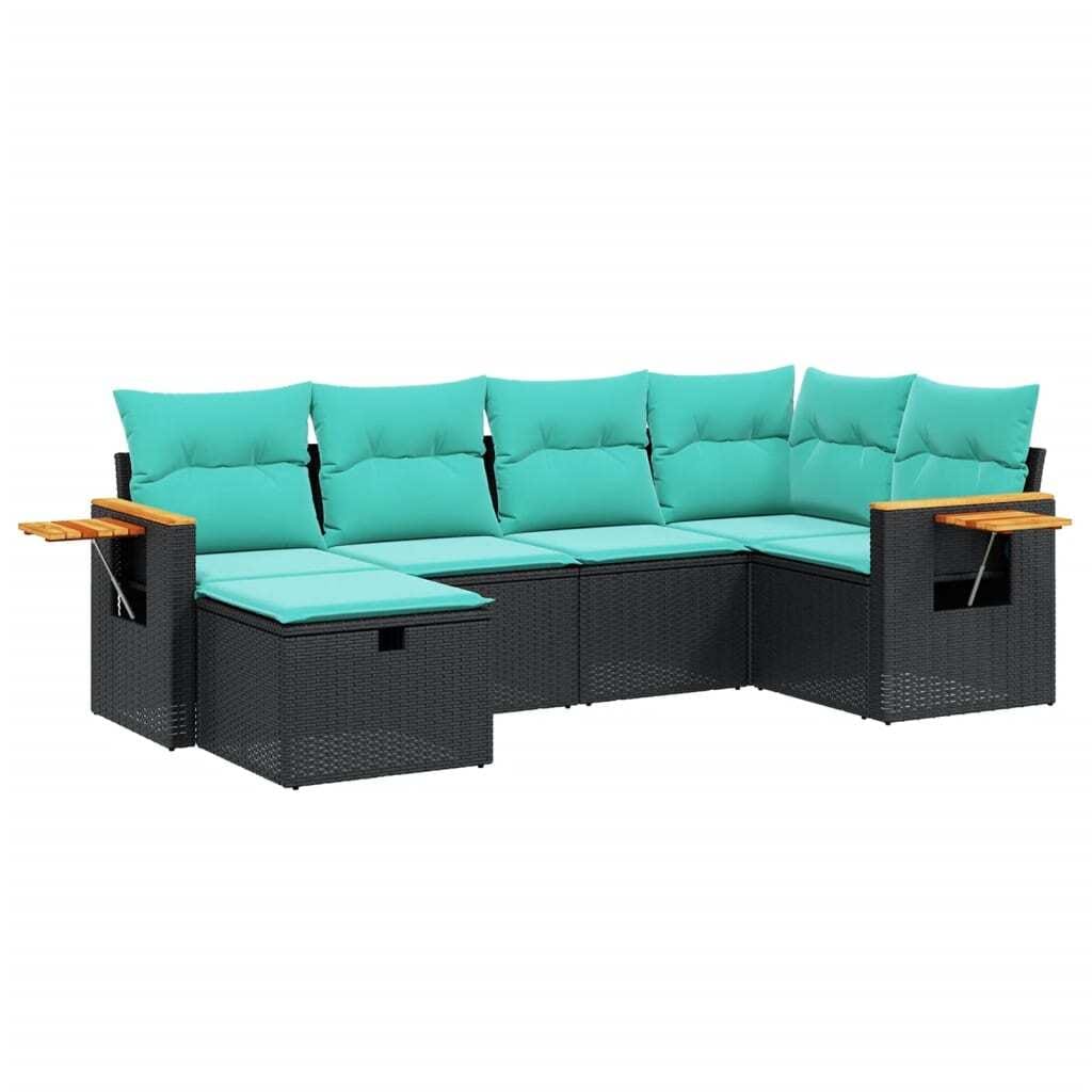 This modular garden sofa set is all about style and practicality, perfect for outdoor spots like backyards, terraces, or balconies. Made from tough PE rattan and powder-coated steel, it not only jazzes up your outdoor space but also offers comfy seating with its cushy cushions, designed to fit up to 6 people while welcoming friends and family to chill together.