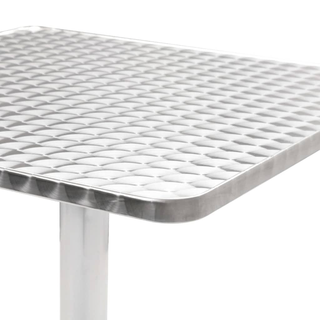 This square outdoor bistro table has a sleek design and modern materials, making it perfect for any outdoor dining experience. With dimensions of 23.6 in by 23.6 in and a height of 27.6 in, it’s great for balconies, terraces, or cafés, easily fitting into different settings with its stylish grey and silver finish, offering both practicality and style.