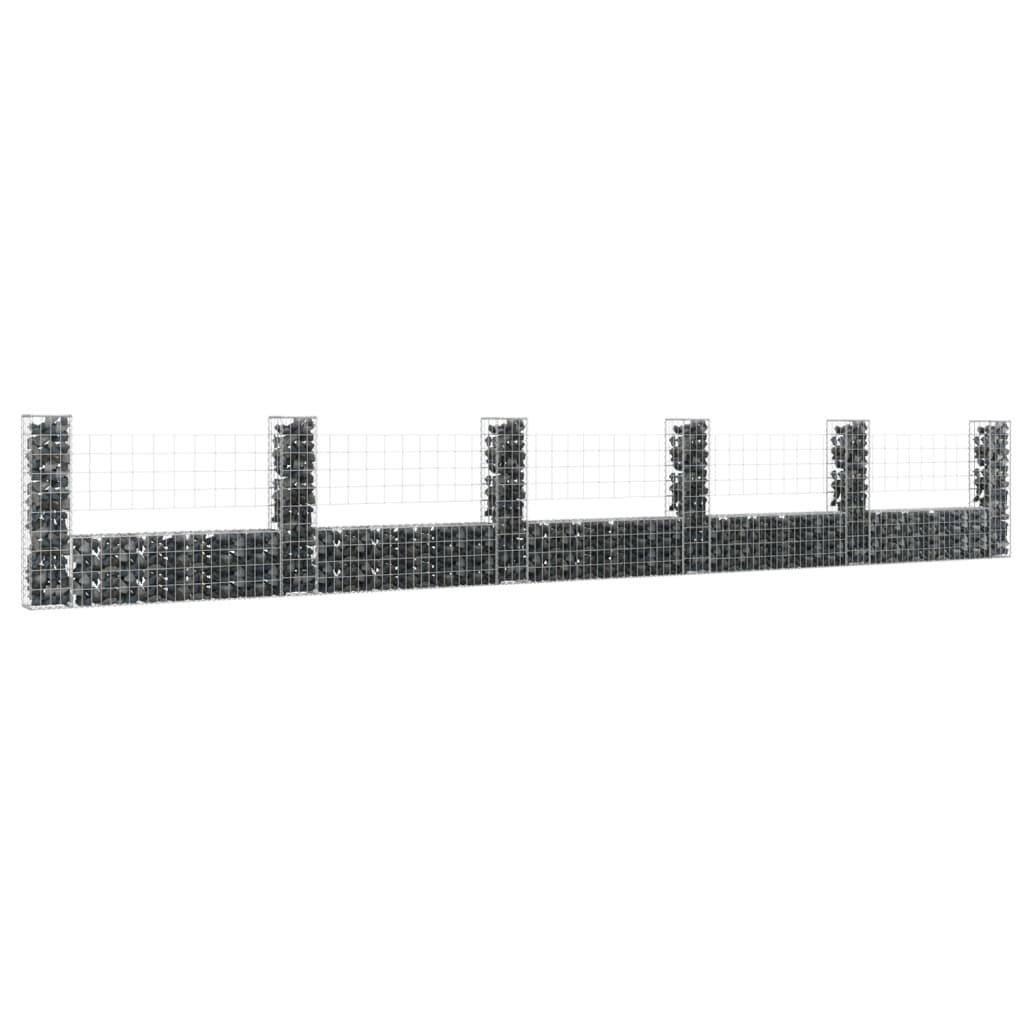 vidaXL U-shape Gabion Basket with 6 Posts Iron 244.1″x7.9″x39.4″